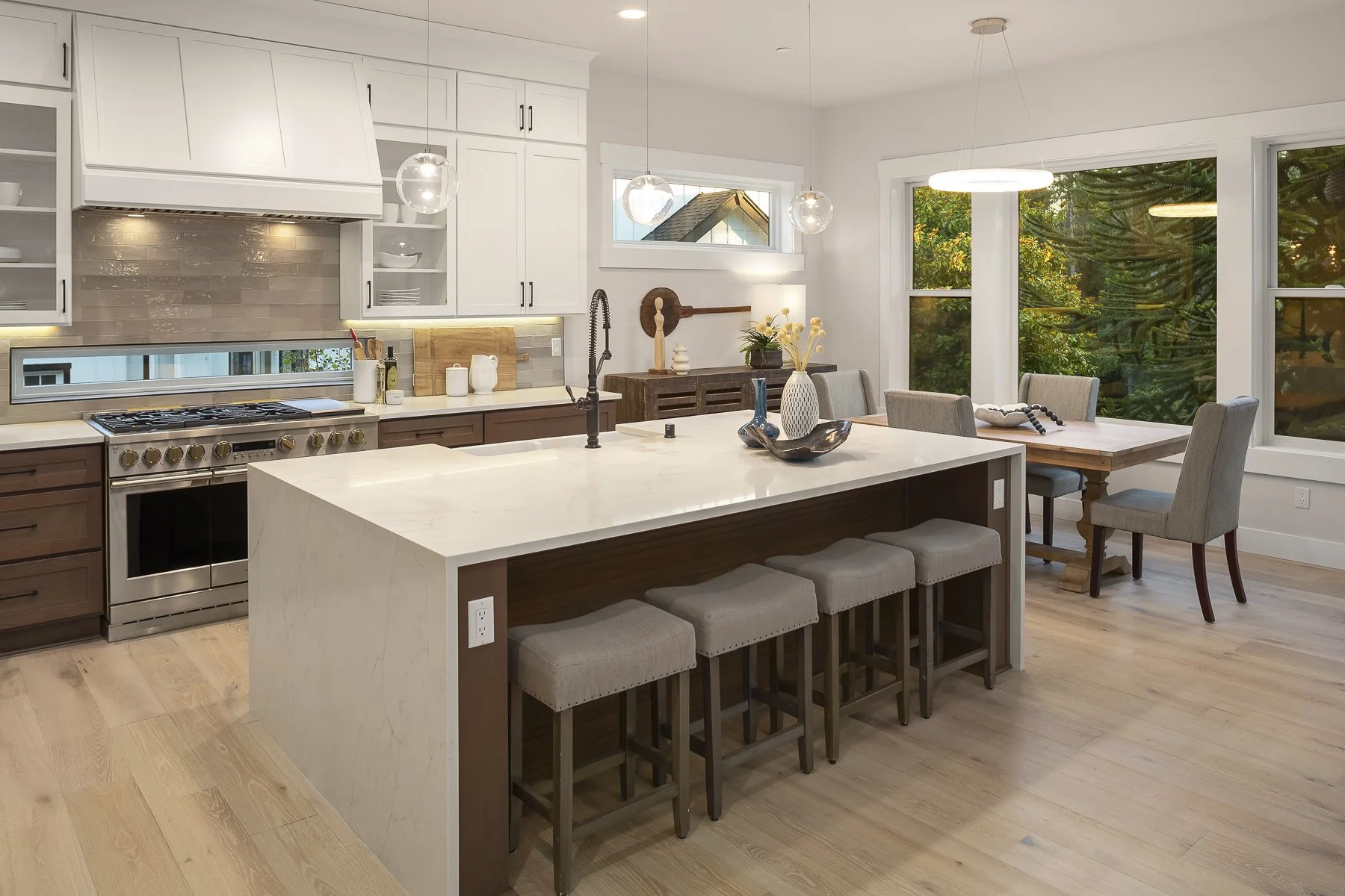 The Edgewood Estate presents over 4,250 square feet of living space with 4 spacious bedroom suites, including a guest room on the main floor and room for an elevator. The expansive covered outdoor room is tailored for year-round entertainment, featuring heaters, a fireplace, TV, and BBQ. The chef’s kitchen is equipped with professional grade appliances, luxurious finishes, custom cabinetry, and an oversize center island. The private owner’s retreat features a large walk-in closet and a spa-like master bath complete with an oversized shower, double vanity, and soaking tub. Additional luxury features include a large mudroom, exercise room or wine cellar, and an electric car charging station in the 3 car garage.